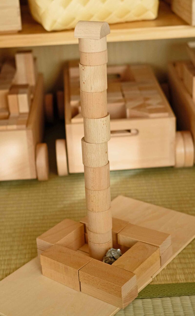 童具館の積み木の作品集「積木のいろはで遊ぼう!コレクションブック 童具館」を参考にしながら、積み木で遊びました。
