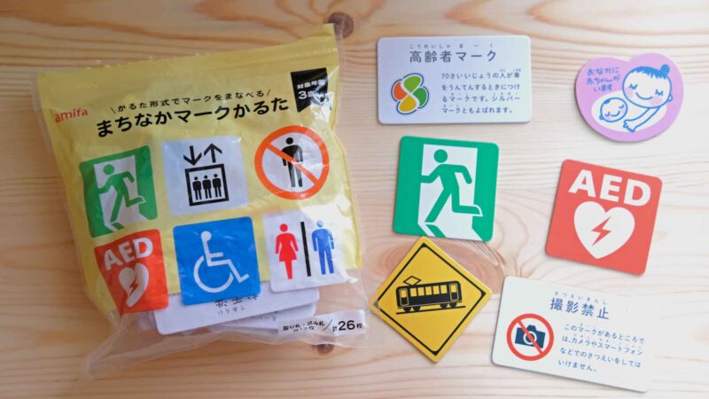 標識を覚えるカードとしても優秀で、「AED」や「マタニティマーク」など現代の生活に即したマークが含まれています。枚数も多すぎず少なすぎず、初心者にはちょうどいい枚数です。