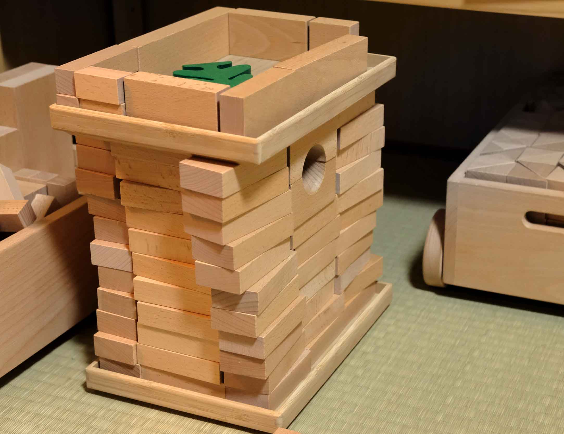 子どもが3歳8ヶ月のとき、家でどんなふうに遊んでいたのか、積み木、ネフ社のアングーラ、工作の様子を紹介します。