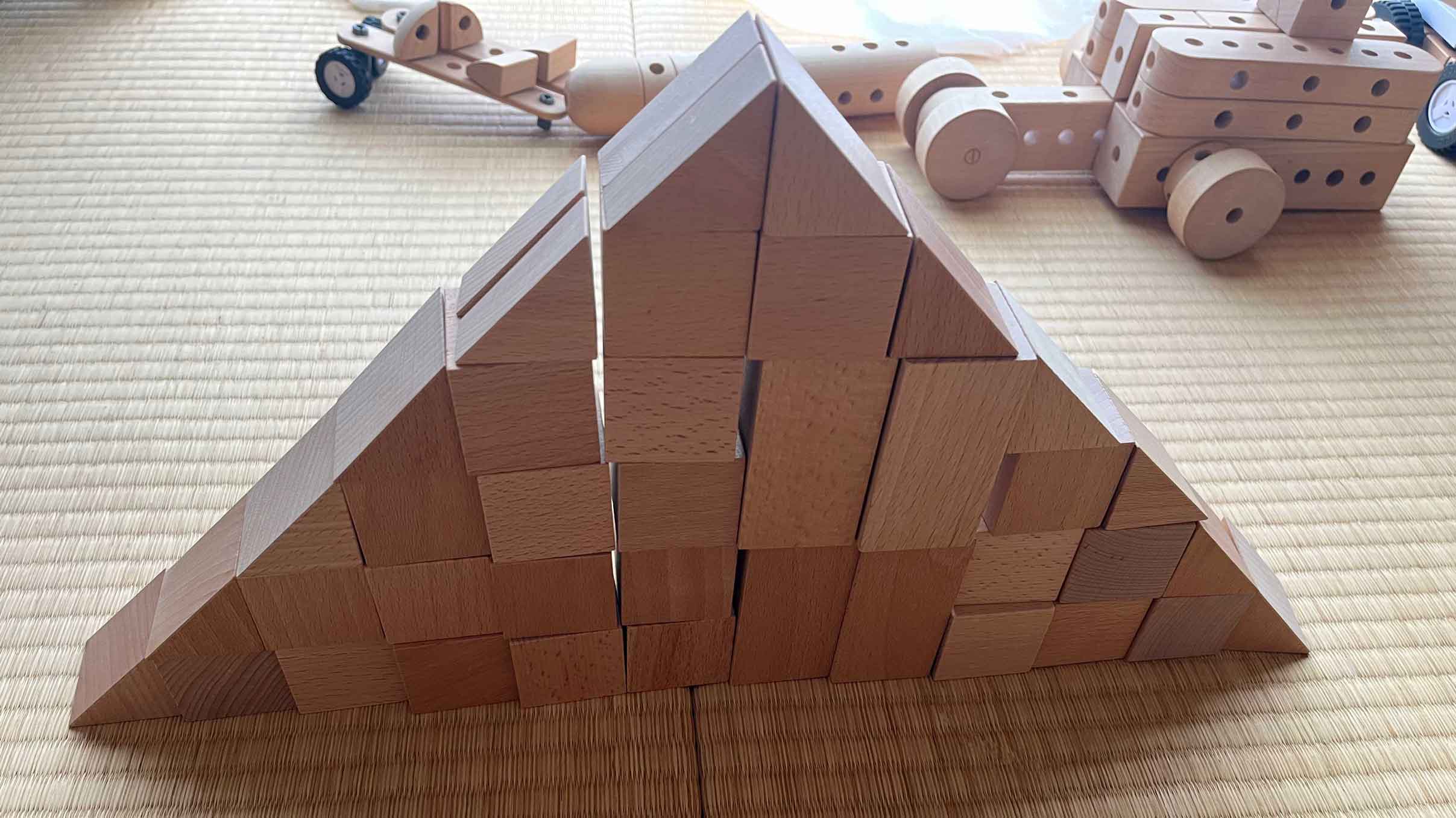 最近、前よりも三角の積み木をうまく使えるようになった感じがします。