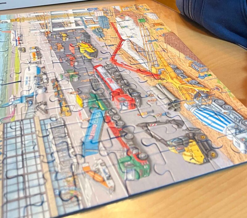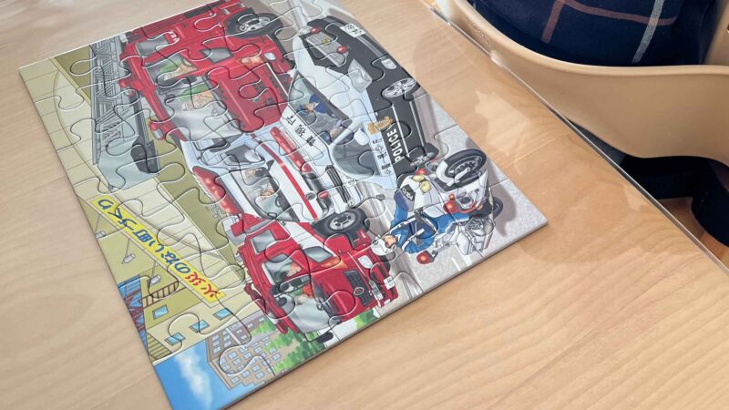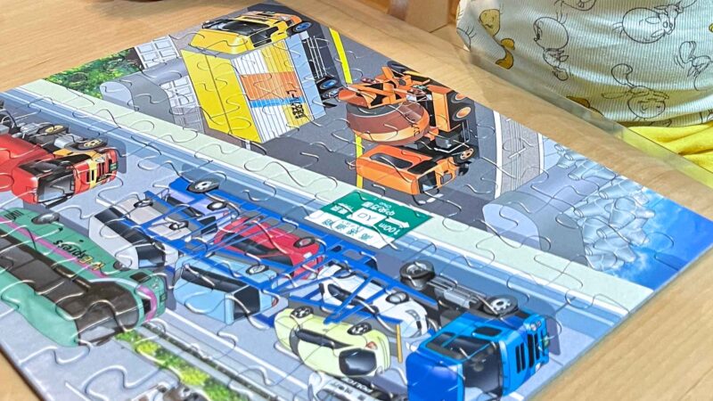使っていたのは「くもんのジグソーパズル ステップ4 いろいろな場面ではたらく車」。今は絵柄が変わっているようです