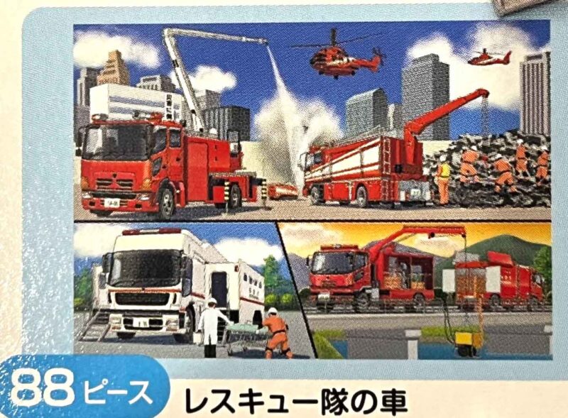 赤色のピースが多いうえに、スーパーアンビュランス以外の車両にうちの子どもはピンと来なかったみたい…。