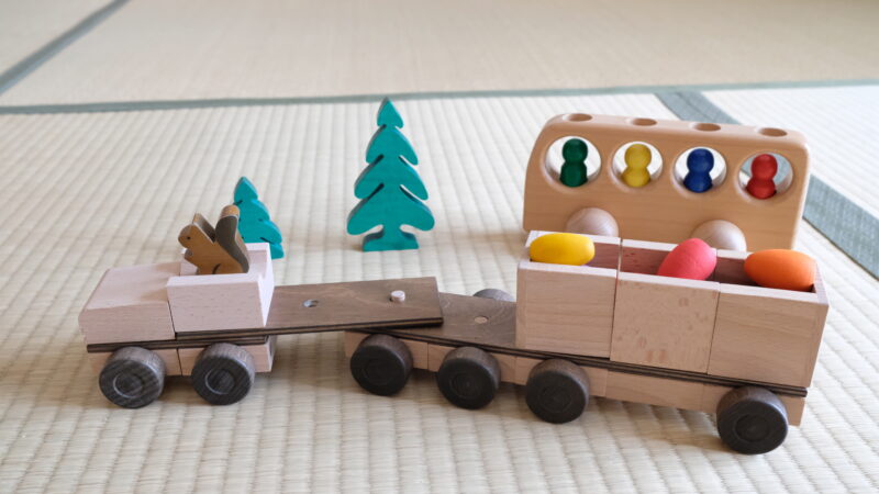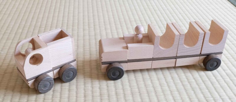 精密で頑丈な作りで、100種類以上の車が作れる木のおもちゃ「レトロトラック」。私もお気に入りです。